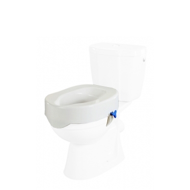 Einfache Montage: den Toilettensitzerhöher einfach aufsetzen und die Halteklammer mit den Rädchen festziehen.