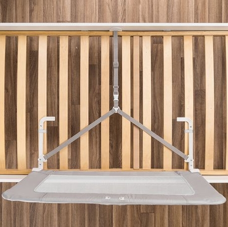 Die Montage ist mit wenigen Handgriffen erledigt. Mit den stabilen Stützfüssen und dem individuell verstellbaren Gurtsystem lässt es sich sicher am Lattenrost fixieren. Dann einfach die Matratze darauflegen – fertig!