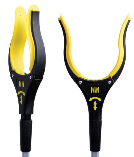 Sehr leichte Greifzange mit ergonomisch geformtem Handgriff. Für besonderen Halt sorgt ein Spezialgummi auf den Greifelementen. Mit dem um 90° drehbaren Kopf ist sie vielseitig einsetzbar und eignet sich auch zum An- und Ausziehen von Kleidung.