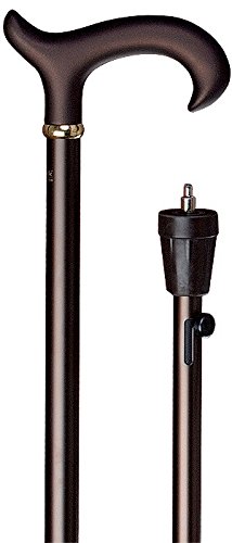 Stabiler Gehstock aus Aluminium mit ergonomischem Derby-Griff aus Acetat und samtiger Soft-Beschichtung.