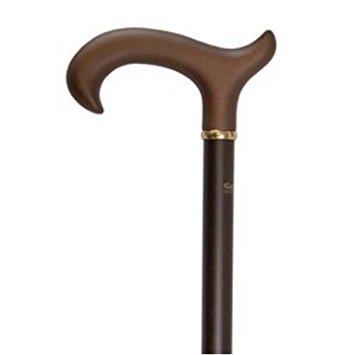 Stabiler Gehstock aus Aluminium mit ergonomischem Derby-Griff aus Acetat und samtiger Soft-Beschichtung, mit Gummipuffer.